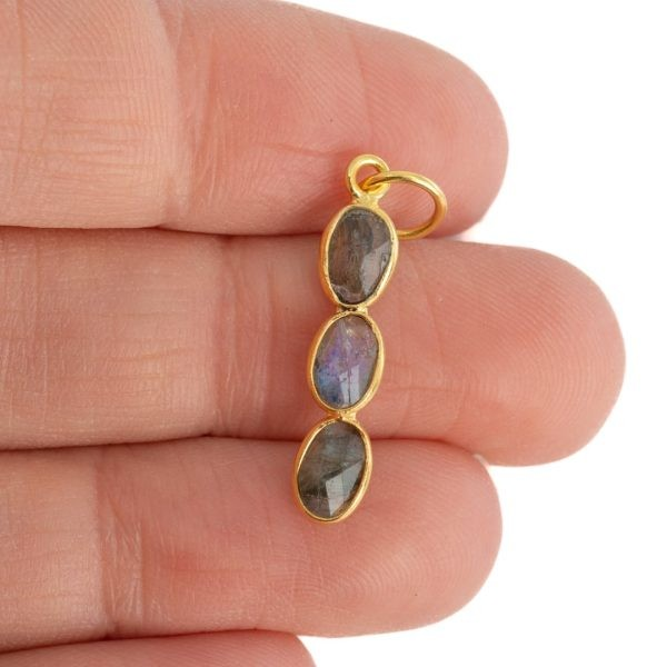 Pendentif 3 Pierres Labradorite – Argent et Plaqué Or – 20 x 4 mm